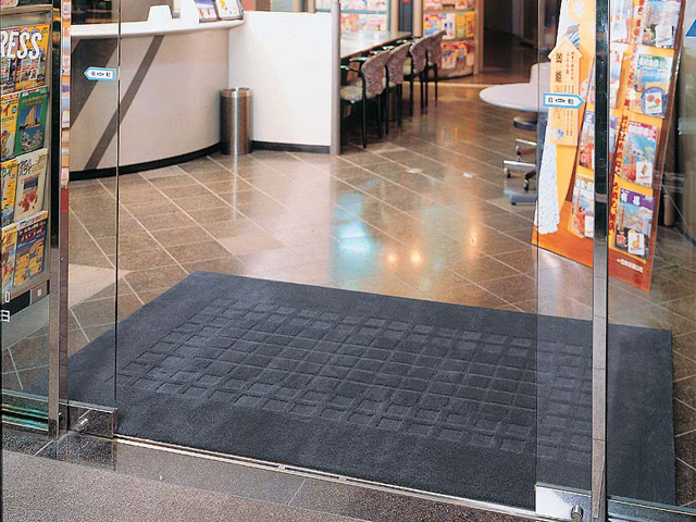 | うす型 吸塵吸水マット | 設置場所を選ばないうす型設計で歩行の妨げにならず、ドアの開閉も邪魔しません。高いブラッシング効果で、靴底についたホコリをしっかり除去します。防炎性能あり。 |