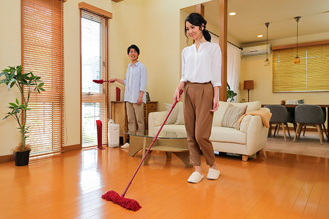 ホコリを立てずにホコリを取る。ダスキンフロアモップ、ハンディモップ!